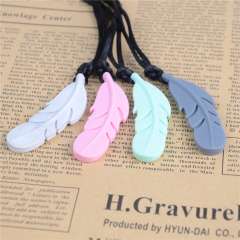 Food Silicone Beads Feather Teether Silicone Necklace Pendant With Strap Baby
