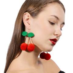 Cherry Pom Pom Ball Drops Earrings Jewelry Women Dangle Earrings Korean Fashion