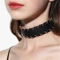 Gothic Choker Leather Necklace Golden Edges Women Punk Choker Necklace Collier