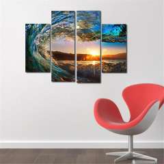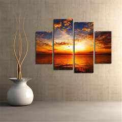 4pcs Modern Huge Wall Art Oil Painting On Canvas Sunset Ocean Unframed Room Decor