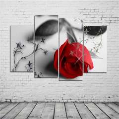 4pcs Modern Huge Wall Art Oil Painting On Canvas Red Rose Unframed Room Decor