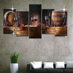 5pcs Modern Huge Wall Art Oil Painting On Canvas Red Wine Glasses Unframed Decor