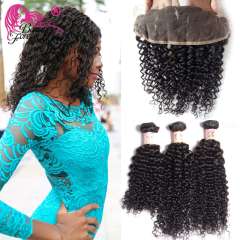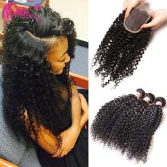 巴西卷曲维尔京头发关闭3包巴西维珍头发与关闭处女巴西卷发卷发封闭