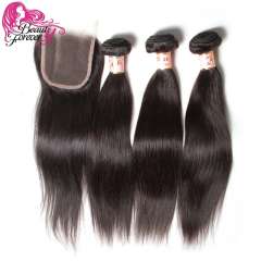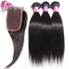 巴西直发关闭7A巴西维尔京头发与关闭3束蕾丝关闭人发编织与封闭