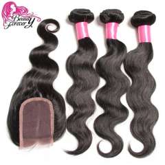 7A未加工的人造头发编织3束与蕾丝关闭巴西身体波与闭合美容永远的头发产品