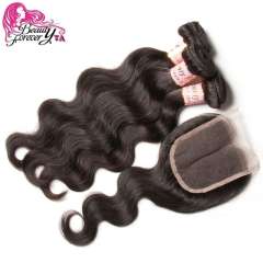 巴西维珍发与关闭4件发束1pc蕾丝关闭未加工人发巴西身体波关闭