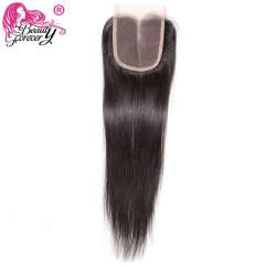 7A处女Brazillian头发直封4'x4'自然人头发关闭1件中等和免费和三部分花边闭合
