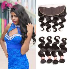 4束巴西维珍发与蕾丝正面关闭7A 13 * 4耳朵耳朵正面巴西身体波人发织纹