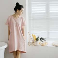 Spring and summer women cotton short - sleeved night skirt pajamas pants thin section of cotton Japan pure color simple and loose home service