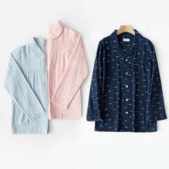 2017 spring cotton couple pajamas suit ladies gauze cotton summer long sleeves home service Japanese simple