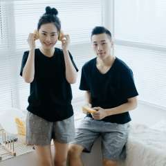 2017 spring and summer cotton short-sleeved T-shirt | men's V-neck loose T-shirt | cotton couple pajamas |
