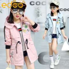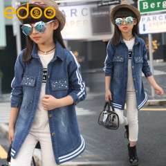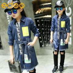 Children's jacket 2017 spring children's clothing new long section of the cowboy windbreaker casual wind girls in the large children's shirt
