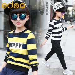 Children's clothing 2017 spring children's clothing new girls in the big children Korean version of the cotton stripes two pieces of a generation on behalf of the hair