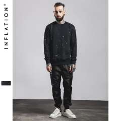INF men's clothing | 2016 autumn new 430 grams machine to break the hole ink printing men's round neck sweater men