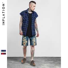 INF men's clothing | 2017 spring and summer new tide brand high street lengthened flash side zipper sleeveless plaid men's shirt
