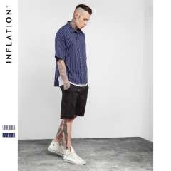 INF men's clothing | 2017 spring and summer new tide on both sides of the zipper oversize short before the long striped men's shirt