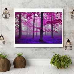 Frameless Huge Wall Art Oil Painting On Canvas Purple Forest Home Decor
