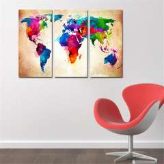 Frameless Huge Wall Art Oil Painting On Canvas Colorful World Map Home Decor