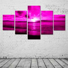 Frameless Huge Wall Art Oil Painting On Canvas Purple Sea Sunset Home Decor