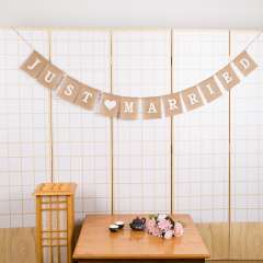 12pc/set Just Married Burlap Jute Flags Banner Party Wedding Decoration