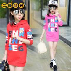 童卫衣2017童装新款女童纯棉中大童长款连帽卫衣儿童印花上衣外套