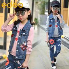童套装2017春款童装新款女童套装中大童韩版儿童印花牛仔三件套
