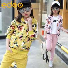 童套装2017春款童装新款中大童女童韩版全棉花朵印花运动两件套