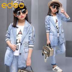 童套装2017春款童装新款女童套装中大童韩版儿童休休闲牛仔三件套