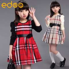 女童秋款连衣裙2016秋季新品中大童休闲潮范韩版格子裙子一件代发