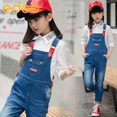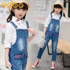 女童套装2017春季新款童装韩版全棉衬衣牛仔背带裤两件套厂家直销