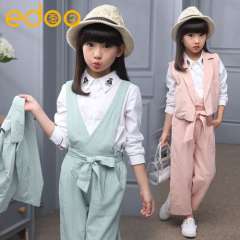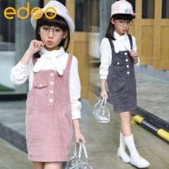 童套装2017春款童装新款女童中大童韩版全棉休闲背带裙衬衣两件套