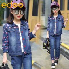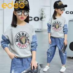 2017春款童装女童套装中大童韩版儿童牛仔两件套厂家直销一件代发