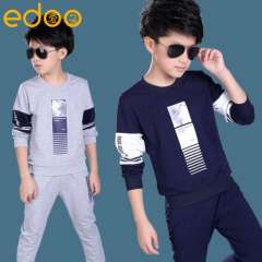 2017年新款休闲童套装男童秋装中大童儿童印花两件套童装一件代发