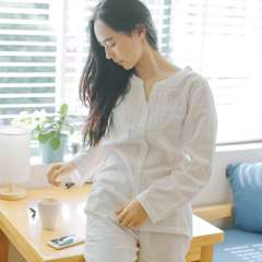 日系睡衣女士夏季春秋款长袖纯棉纱布薄款全棉夏天家居服套装