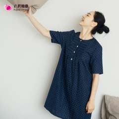 春夏女纯棉短袖睡裙中裙纱布睡衣家居服孕妇裙日系无印风可外穿