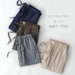 八月格桑 | 春秋季纯棉睡裤男士家居裤 | 全棉条纹情侣睡衣 | 双层纱布