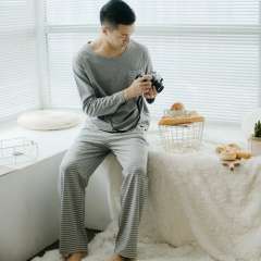 2017春秋新款 | 纯棉情侣长袖套装 | 针织水洗棉条纹男士睡衣家居服