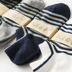 八月格桑 | 纯棉袜子春夏季男士船袜 | 无印风条纹全棉纯色运动隐形袜