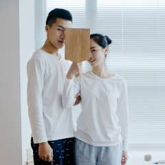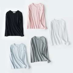 2017春秋季全棉长袖T恤 | 女士V领宽松T恤全棉情侣睡衣无印风家居服