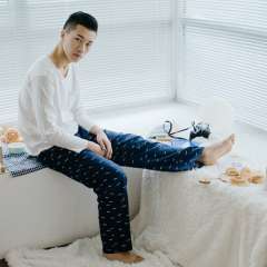 八月格桑2017新款春秋纯棉纱布男睡裤长裤可爱卡通家居裤