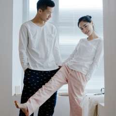 2017春秋季全棉长袖T恤 | 男士V领宽松T恤 | 全棉情侣睡衣 | 纯色家居服