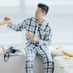 2017春秋季全棉情侣睡衣套装男士长袖家居服纯棉双层纱布格子