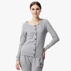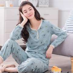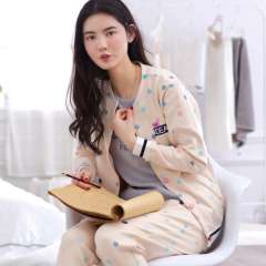 Spring and autumn new round collar cardigan long sleeves cotton pajamas ladies simple European and American wind girl winter casual wear home service