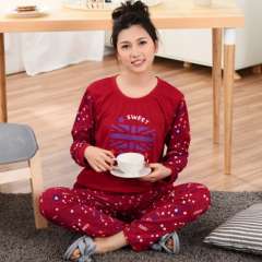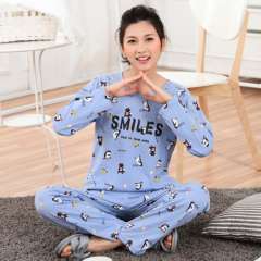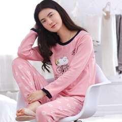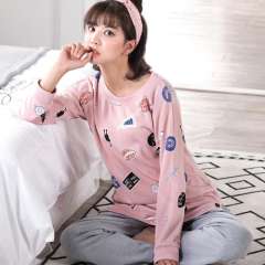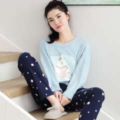 Spring and autumn women's cotton long-sleeved trousers cotton round neck Korean version of the lovely winter girl suits home service