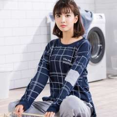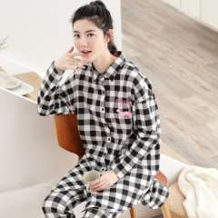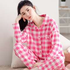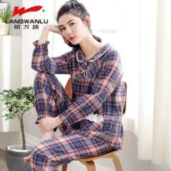 Spring and Autumn new women 's cotton plaid long - sleeved pants cotton women' s leisure pajamas home service suits