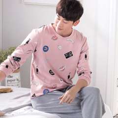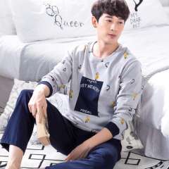 Spring and summer new men's cotton long-sleeved pants pajamas suit | cotton cartoon pattern home clothing sets wholesale