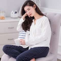Spring and Autumn Korean women's cotton long-sleeved trousers striped pajamas women's cardigan solid color cotton home clothing suit