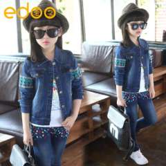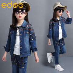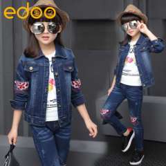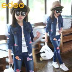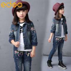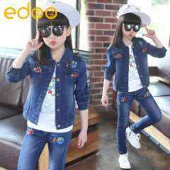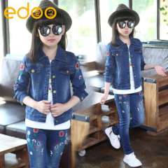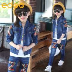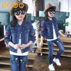 秋款童装2016新款女童牛仔套装绣花儿童两件套韩版童装一件代发