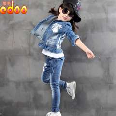 2016童装新款春装中大童女童牛仔套装儿童大白牛仔两件套一件代发