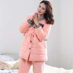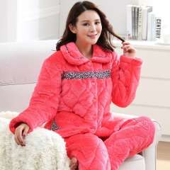 冬季韩版女士三层少女款加厚珊瑚绒夹棉加绒法兰绒保暖家居服套装